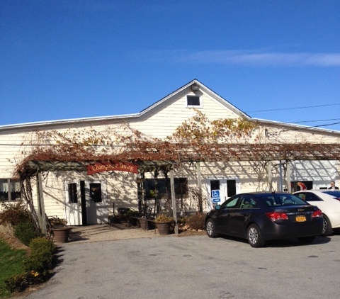 We thought we were safe. Random November Saturday, chilly weekend following a drizzly Friday, just a little after noon—surely Pugliese would be quiet! And indeed, when we arrived, there were only two limos in the parking lot, and several large parties clustered outside around the picnic tables. We had passed Pugliese many times during the summer and opted not to go, given the crowded look of the place. It’s not that we’re misanthropes; it’s just that we prefer to do our tastings in a calm, peaceful atmosphere. Actually, the grounds around the tasting room are quite pretty, with a scenic pond down in a hollow near the outside tables.