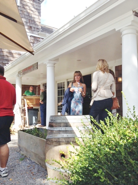 Located on the Main Road in Jamesport in an 1860s farmhouse, Sherwood House’s tasting room has a homey, slightly funky atmosphere, enhanced by the fireplace in the main room, the outdoor deck areas, and the adjacent Material Objects shop which features antique and found objects of all sorts. They also have an outdoor tasting area in their vineyard in Mattituck, which may or may not be open. As we pulled into the parking lot we noticed an exciting sign: raw bar. Oh goody! We have become enamored of the local Peconic Bay oysters.