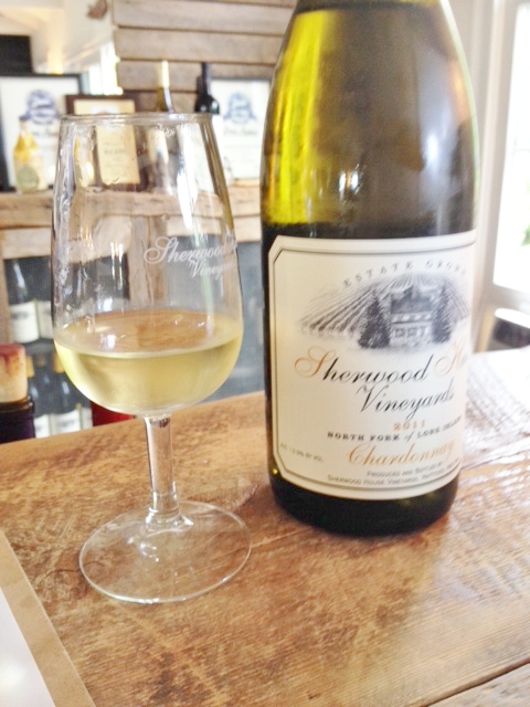 However, we are headed for the oysters. Though we feel it wouldn’t be the best pairing, we opt for glasses of the 2011 Chardonnay, though I would prefer a sauvignon blanc to go with oysters. The oysters are delicious, sweet and briny and full of liquid, fresh from Peconic Bay, to the west of Robins Island, as we are told. We spend a pleasant half hour sitting outside, enjoying our wine and bivalves and listening to the music from inside, which we appreciate much more now that it is not quite so loud.