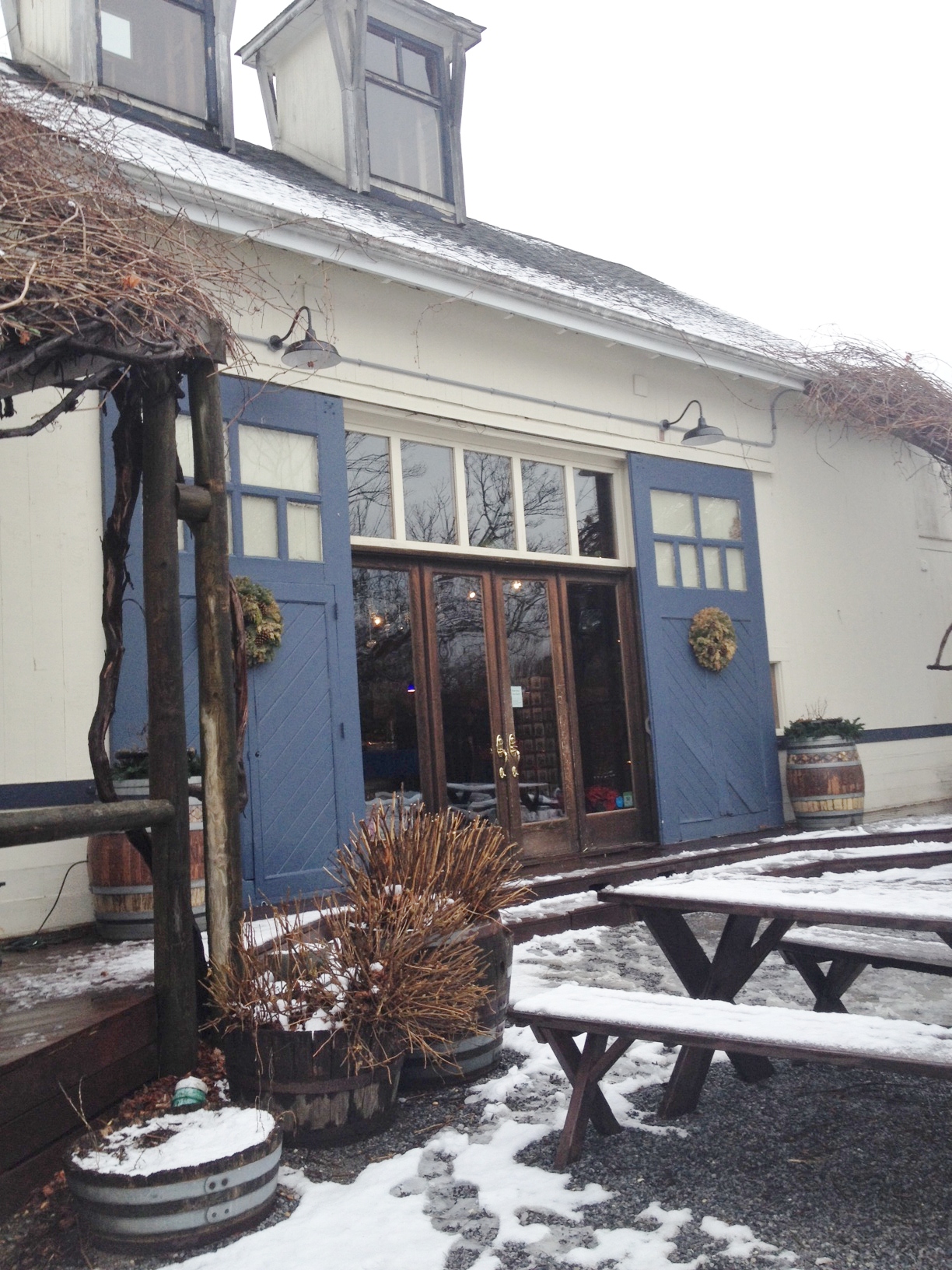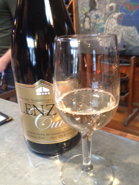 Lenz has some of the oldest vines on Long Island, having planted its first ones in 1978, and they are quite proud of the fact that all of their wines are made from their own grapes. The attractively rustic tasting room (open every day all year long) is not very big, though it is augmented by an outdoor seating area in the summer, and their selection of wine-related gifts tends to be somewhat less hokey than others. In addition, a winery dog made a brief appearance—always a plus in my book. Both of the servers we talked with were smart, attentive, and knowledgeable, with an evident passion for the wines.