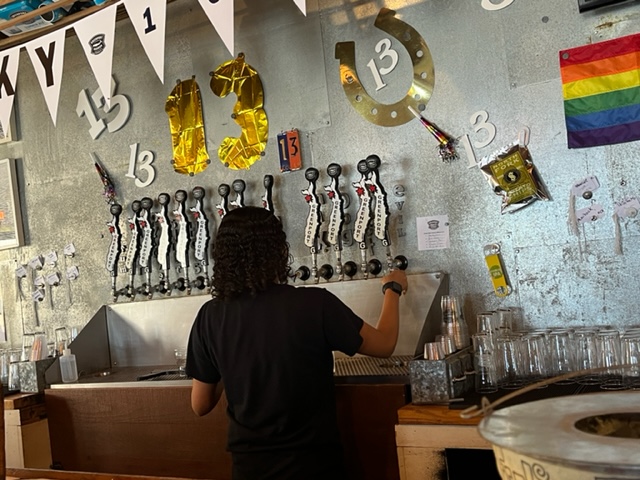Ever have a pink beer? Me neither—until this one. One guest dubbed it “candy beer,” and “like a kid’s drink.” I guess it is a beer for someone who doesn’t like to drink beer, but somehow found themselves dragooned into a visit to a brewery.