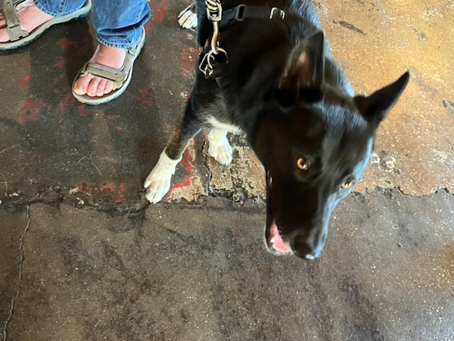 We were more than halfway through our flights when a different worker came over and, very apologetically, told us that we’d have to take the dog into the other room. A health department violation! Oh my. There still were not any good four-person tables, but they quickly wheeled in a nice big table and added chairs for us, so no problemo. At the end, our guests decided to prolong the experience with a glass of Dog Adoption. For $12, they could have gotten a keepsake glass and Greenport Harbor would donate $4 to Unicef for Ukraine.