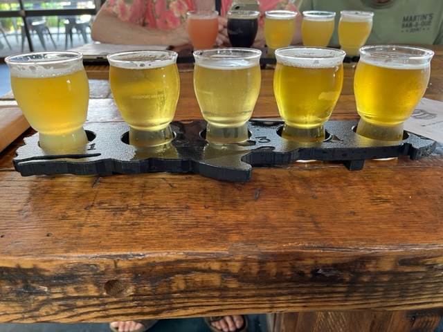 It was hot, hot, hot, and we’d spent the morning on the beach, so a cold beer sounded a lot more appealing than a glass of wine, even a crisp white or chilled rosé. In addition, our guests had brought their dog with them, limiting the number of wineries that would welcome us all, so a brewery seemed like the best idea. We knew Greenport was dog friendly, so off we went.