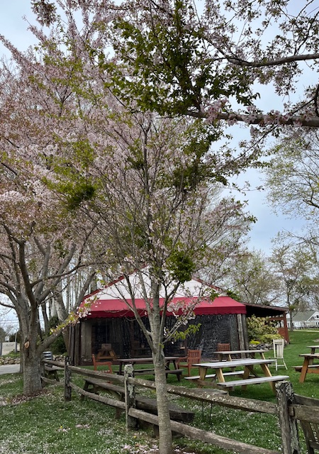 Reasons to visit:  pleasant, quiet tasting room; dogs allowed; burger night, which will recommence on May 16th “and continue every Thursday and Friday 4-8 pm through the summer”; the Estate Merlot.  Burger night features delicious burgers made with beef from the Charolais cattle the McCalls raise, and has become quite popular.  Make reservations if you want to go!  I wrote about it in my blog on August 3, 2023.