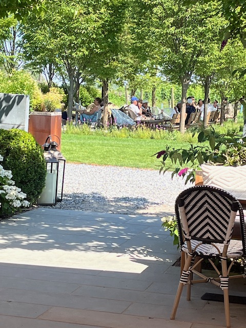 It has been a beautiful week, so when our friends the winery aficionados texted us and asked if we would like to do a tasting, we quickly said yes.  We were delighted to hear we’d be going to Lieb, since we hadn’t been there since February 2020, and we were curious to see if anything had changed since Russell Hearn et al bought the winery recently.  Hearn has been the winemaker for Lieb since 1993, and he also had his own label, Suhru, with an intimate tasting room on Main Road.  Now the two labels are combined into one location, on bucolic Oregon Road, right across the street from Oregon Road Organics.