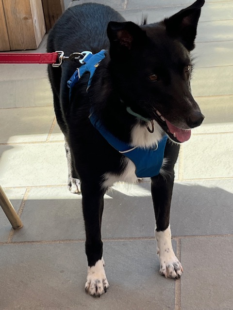 Our “well-behaved” dog, who was allowed on the patio–and attracted several pats, as well as the attention of a couple of other dogs who passed by.