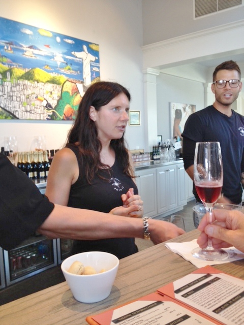 As we were chatting, a tall blond man came over to our table, and introduced himself as Tom Rosicki, one of the owners. We asked him about the Brazilian connection evident in the “Carnaval” names of some of his wines and some of the décor of the tasting room and shop. He said that he and his wife Cynthia, the inspiration for the name of his new favorite of their wines, had gone to Rio and fallen in love with the place and the people. Carnaval is a reference to what they call Mardi Gras in New Orleans, or Fat Tuesday, and is a huge celebration in Rio, with elaborate parades and costumes. “Guess how many times I’ve been there?” he asked. “Twenty?” Nope. “Sixty-three! And we’re going again next week.” He also pointed out a statue far away at the end of a row of vines, and informed us that it is a (small) replica of the famous Christ the Redeemer statue which has become a symbol of Rio, like the Eiffel Tower for Paris.
