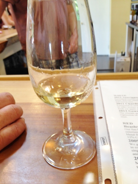 We decide to buy a bottle of the Beasley’s Blend because we are always looking for everyday reds—we eat a lot of pasta—and a bottle of the 2013 Chardonnay so we can try it. We have it with some spicy stir-fried chicken and eggplant I make, and it is delicious. Quite different from the 2012, though it also has a slight butterscotch aroma and flavor, this is much more balanced, with less of a pineapple taste and a touch more citrus—maybe Meyer lemon? I think I’d really like it with some grilled salmon.