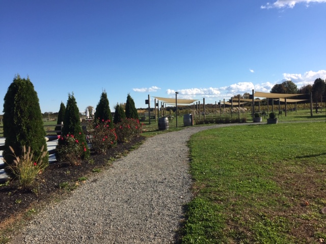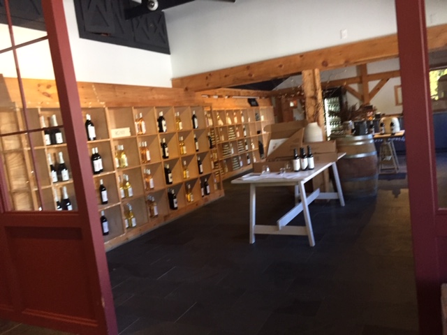 On the other hand, if what you are interested in is possibly chatting with the winery owner or a server who is very knowledgeable about the wines, and you like a small intimate setting, there are several wineries we like very much.  One is Diliberto’s, which we have been to frequently, though not recently.  It is just down Manor Lane from an apple orchard, so you can combine apple-picking (or just buying a bag of apples and a pie) with your winery visit.  On occasional Sundays, “Grandma” (a.k.a. Sal Diliberto himself) does cooking demos, making pizza or pasta, tastes of which he then distributes. He also sometimes has a singer and/or musician in. The room is small, painted in trompe l’oeil fashion to resemble the town square of a little Italian town, and we tend to like his reds.  Water’s Crest, which I have reviewed in the blog, is also a small intimate space, as are One Woman, McCall’s, Sannino Bella Vita, and Mattebella.  Though we’ve never encountered an owner at Shinn’s, it also has a cozy tasting room a bit off the main roads, though we only liked a couple of their wines.