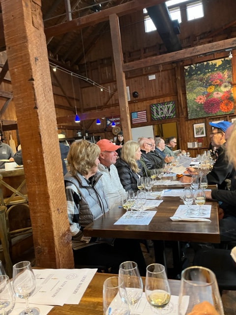 After some discussion, we decided that each couple would share one tasting—which proved to be more than enough, since, as much as we all liked the wines, we left over quite a bit. One tasting of their six still wines is $28. One could also opt for a tasting of their three sparklers for $26. In past years we have belonged to their case club, which is their version of a wine club. Buy a case (which one should do early in the season), and you’re in.