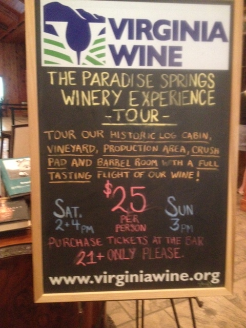 Our cousin requests a taste of this, since, she notes, she likes cabernets. Our server also brings a sample of the Petit Verdot, noting that it has more of the kind of fruity flavor those who like cabernets are looking for. And she is right. Though I like this blend of 68% merlot, 16% cabernet sauvignon, 4% petit manseng, 3% syrah, 2% barbera, 1% malbec, 1% petit verdot, 1% sangiovese, and 1% blaufrankish (I told you Channing likes to experiment!), the cousin does not. It is quite tannic and dry, and could probably benefit from a few more years in the bottle. The aroma includes berries and cherries (the merlot, I’m sure) and spice, as does the taste.