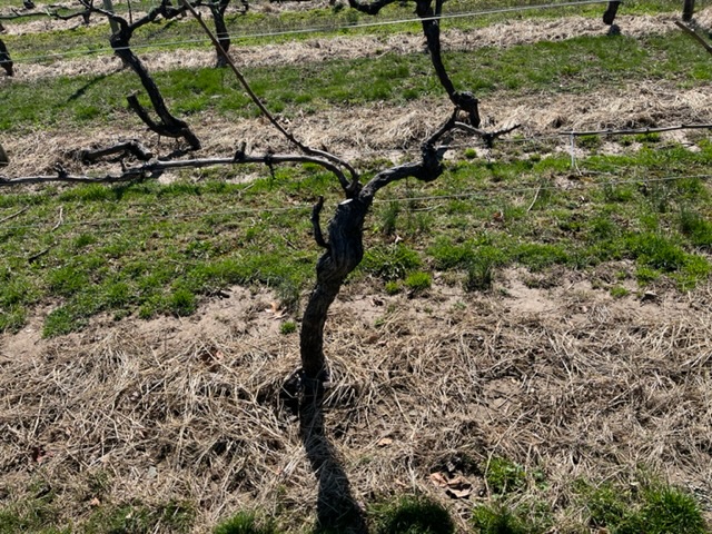 Nancy is showing us a gewurztraminer vine, one of the original ones planted at Pindar. The roots can go very deep.