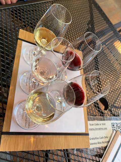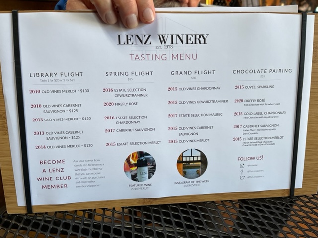After days of rain, the sun came out and we decided to do our walk in Greenport, strolling up and down Front and Main Streets. As we did, we noted the crop of newer restaurants we had not yet tried, and vowed to return if the pandemic allows. On the way home, we stopped in to Lenz to do a tasting, and were glad we did. Founded in 1978, Lenz is the second oldest winery on the North Fork, and both the tasting room and the wines are classic.