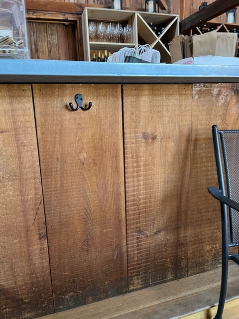 I appreciate it when bars have these hooks for one’s belongings.The vines are still bare–no bud break yet!