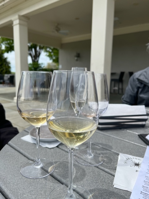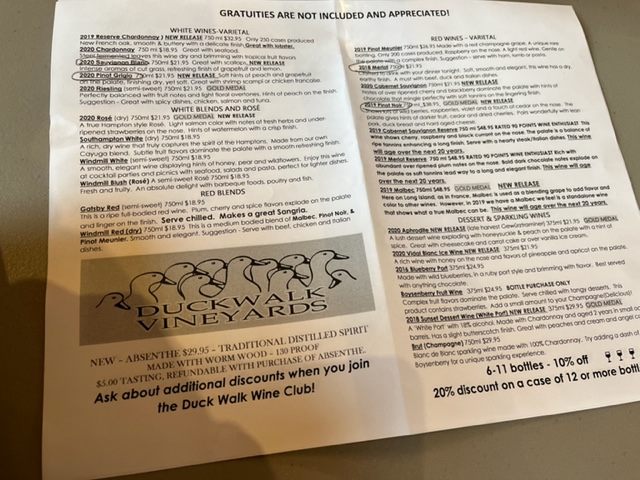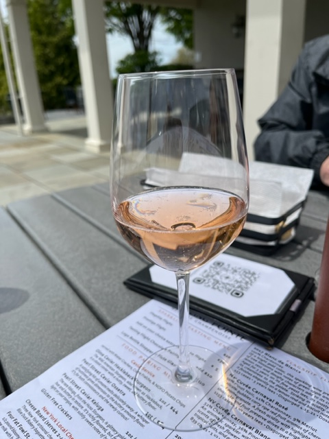 This one doesn’t have much aroma, and is somewhat of a letdown after the pinot noir. It has some nice spice and berry notes, but not much depth. And, like all the wines we’ve tasted today, the question of value arises. Is it worth the price being charged? Given that there are other North Fork wines of similar quality for less, I think not. Others may differ, or like the celebrity connection.