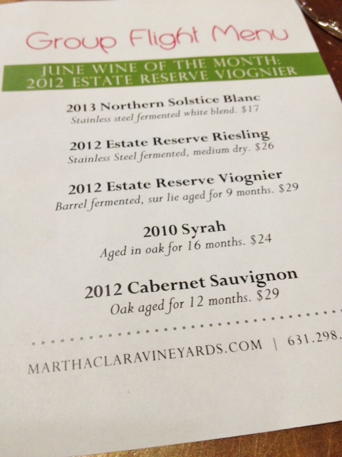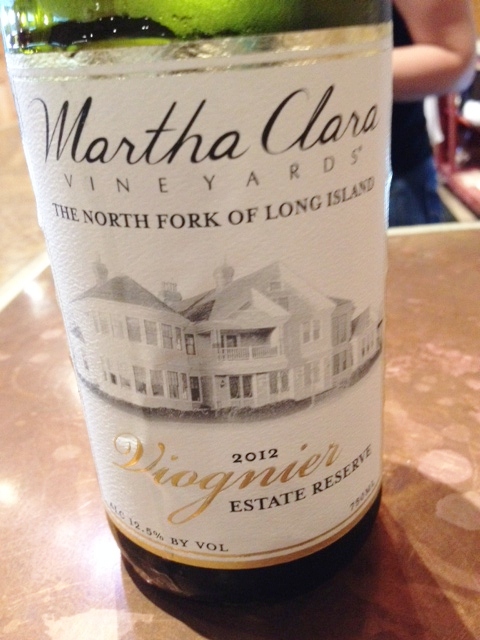 Since we’ve been somewhat disappointed so far, we decide to skip to their pricier—though still reasonably priced for Long Island—reds, and move to their Bordeaux blend:  Merlot, Cabernet Franc, Cabernet Sauvignon.  Yay, finally, a wine with something to it!  But not a lot.  The color is nicely dark, the aroma is berries and fruit, and the taste is also of berries with a trace of oak, but compared to other Bordeaux we’ve had this has no depth or layers of flavor.
