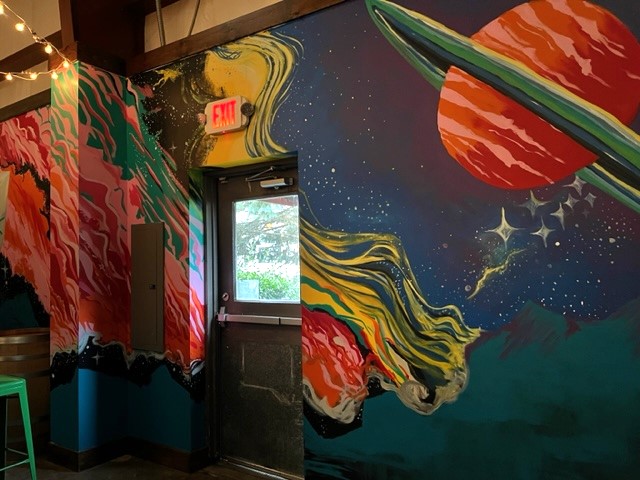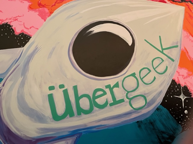Your GPS says, “You have arrived,” but as you look around you are thinking, “Where?” Never fear, you are near. Just turn off the road you are on into what looks like an alley, and a few yards down the road you will see the sign for Übergeek Brewery. In a past life, this warehouse-looking building was home to Moustache Brewing Company, and apparently nothing has been changed on the outside, except for the sign, and the only change on the inside is the painting of a large and rather geeky mural. Yes, they take the geek theme seriously.