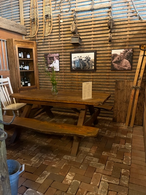 Overall, my husband commented, the place got plus marks for setting, but he was not overly impressed with the wines, which we found drinkable but not special. We did like the way the wines were served, especially since we were sharing the flights. We each got a wine glass, and then the tastes were brought to the table in little carafes, set down in the order in which they should be tasted.