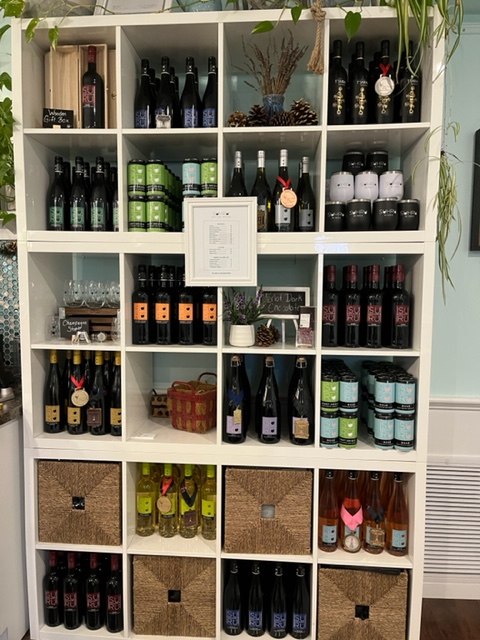 Reasons to visit: pleasant intimate setting, where you can talk to the owner and learn about the winemaking; you can take your tastes to a table, all at once on a carefully labeled tray in nice round-bottomed glasses; snacks from Touch of Venice, a restaurant whose food we like; a cute little outdoor patio area for warm weather; we liked almost all the wines, but especially the shiraz, the sauvignon blanc, and the dry riesling.