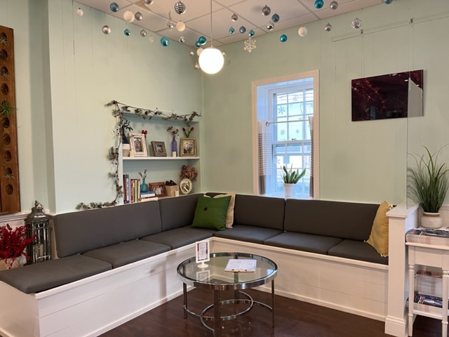 On this sunny but cold November Saturday, there was a steady trickle of guests in the tasting room, including a large group when we arrived, and then a few couples, all of whom seemed very happy to have found Suhru. The room is small but nicely set up, with a bar at which one can stand, comfy couch seating areas, and tables featuring bottles of water and glasses. We decided we’d like to sit, so Susan brought our flights to the table for us, and gave us a thorough run-down of each wine.