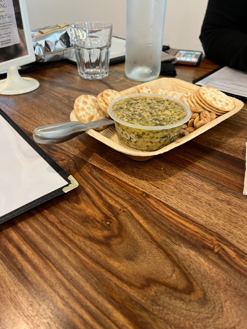 There are three flight choices: Fall Favorites, of four wines for $14; White Wine of four whites for $12; and Red Wine, of four reds for $15. One could also choose from the entire panoply of offerings of Suhru and T’Jara wines (The T’Jara label is owned with another couple and honors Russell’s Australian roots.) and put together a tasting, or get a glass or a bottle. We also noticed that if one bought a bottle of the wine of the month—the Shiraz—one of the tastings would be free.