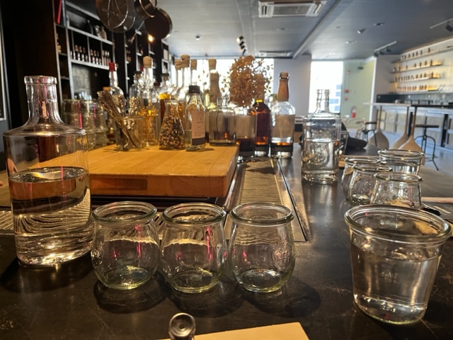 My husband likes gins, so we started with their botanical gin. The aroma is herbal and floral, but we found the taste a bit harsh, with some bitterness. By the way, you can schedule an interesting experience at Matchbook, the opportunity to blend your own gin from the vast array of additions they have.