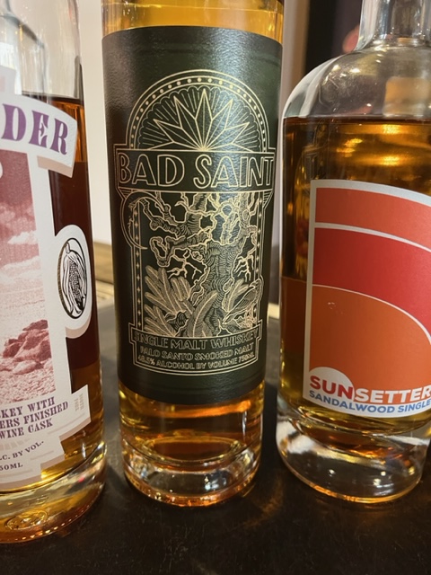 The Flatlanders are corn whiskies, and this one is made from 60% Dent corn, 18% Danko rye, and 13% malted barley, distilled “with East End Aleppo peppers” in a red wine cask. See what I meant by mad scientists? I liked it so much that I bought a bottle. The aroma is of peppers and spice, but the taste is not overly spicy, and it finished smooth. I look forward to making a cocktail with this, perhaps with some lime juice and agave syrup.